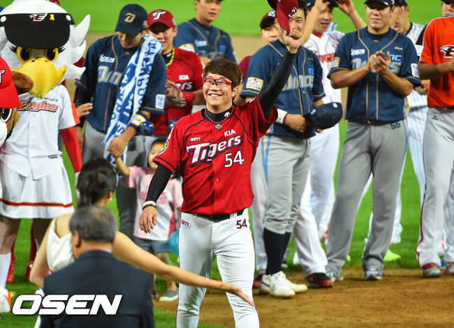 경기종료 후 우수투수상을 수상한 양현종이 팬들에게 인사를 하고 있다./ soul1014@osen.co.kr