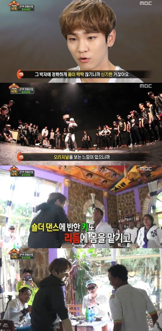 이곳에서 키는 다른 식객들과 함께 전통음식인 젤젤띱스, 전통주 떼지 등을 맛보며 감탄사를 이어갔다. 특히 전통춤 숄더댄스를 보고는 흥미를 표하며 직접 나서 리듬에 몸을 섞기도 했다.