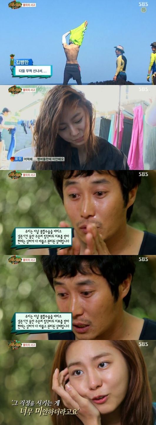 이 사건으로 제일 충격을 받은 이는 김병만이었다. 김병만은 "제일 잘못이 큰 건 저"라면서 눈물을 보였다.