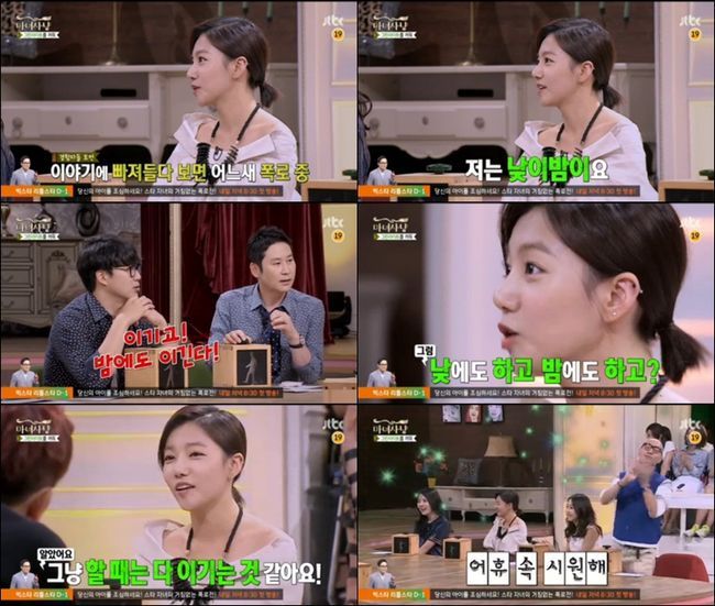 또 “여자가 생각할 때 남자가 알아차리지 못하는 여우짓이 있냐”는 허지웅의 질문에 “엄청 많다”며 그 중 하나로 “같은 자리에 있는 여자들을 은근히 디스하는 것”이라고 말했다. 이어 “과거 남자 얘기하는 것”, “술자리에서 혼자 노래 듣고 있는 등 특별한 척 하는 사람” 등의 예를 들어 출연진을 공감하게 만들었다.