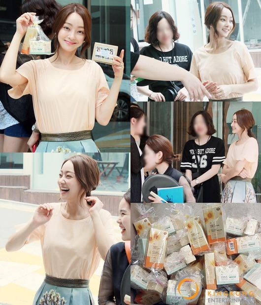 이날 서효림은 일일이 밝은 미소로 선물을 챙기고 스태프들에게 손수 전달하며 더욱 화기애애한 분위기를 이끌었다. 많이 지쳐있을 현장에 사기를 북 돋아 주는 활력소 역할을 하며 보는 이들을 흐뭇하게 했다.