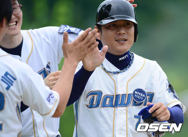 3회초 1사 주자 없는 상황, 다원 레인저스 허상열이 홈런을 치고 동료들과 기쁨을 나누고 있다.