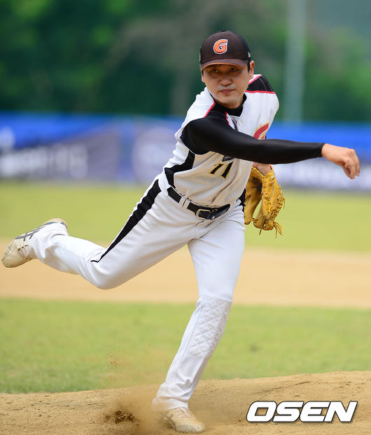 19일 경기도 양평 한국야구 아카데미에서 '제5회 니베아맨 컵 전국 생활체육인 야구대회' 안양GMB와 서대전고 동문야구단의 경기가 열렸다.