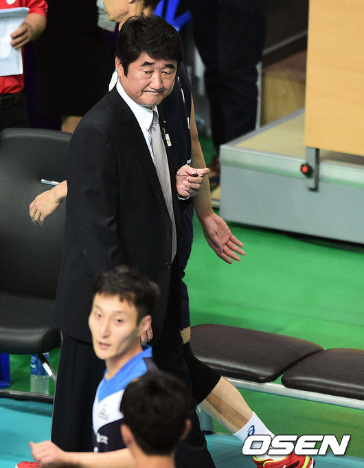 19일 오후 경기도 안산시 상록수체육관에서 진행된 '2014 우리카드컵 프로배구대회'(이하 코보컵) 삼성화재와 현대캐피탈의 경기, 1세트를 내준 삼성화재 신치용 감독이 아쉬운 표정으로 코트를 이동하고 있다.
