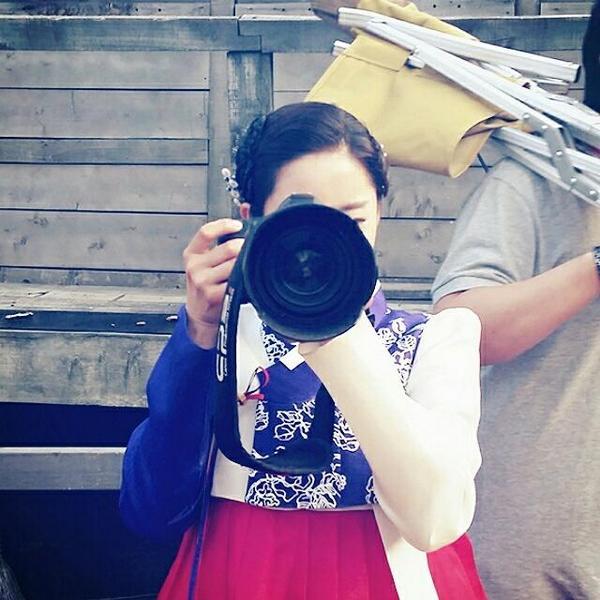 공개된 사진 속 전혜빈은 곱게 한복을 차려입고 자신보다 큰, 소위 말하는 '대포 카메라'를 들고 포즈를 취하고 있다. 그의 주위로는 분주한 드라마 스태프들의 모습이 보여 눈길을 사로잡는다.