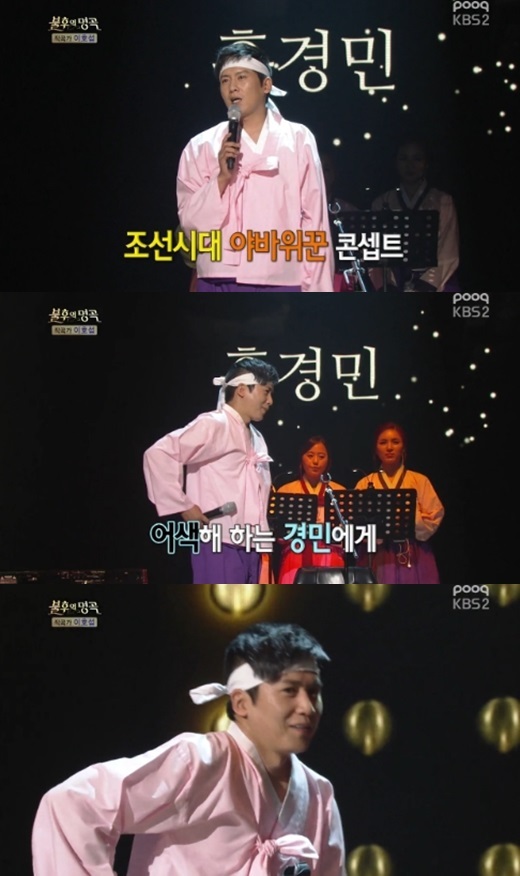가수 홍경민이 한복을 입고 무대에 올라 눈길을 끌었다.