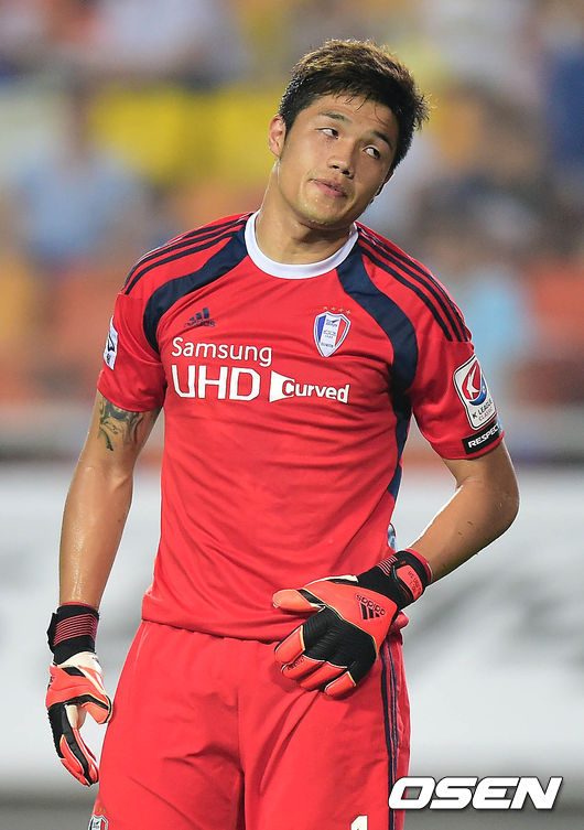 19일 오후 수원 월드컵경기장에서 열린 '현대오일뱅크 K리그 클래식 2014' 수원 삼성과 인천 유나이티드의 경기 후반 인천에게 두번째 골을 허용한 정성룡이 아쉬운 표정을 짓고 있다.