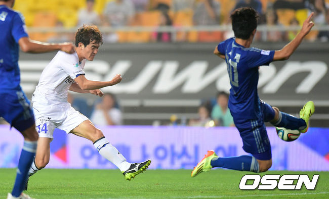 19일 오후 수원 월드컵경기장에서 열린 '현대오일뱅크 K리그 클래식 2014' 수원 삼성과 인천 유나이티드의 경기 후반 인천 이석현이 슛을 시도하고 있다.