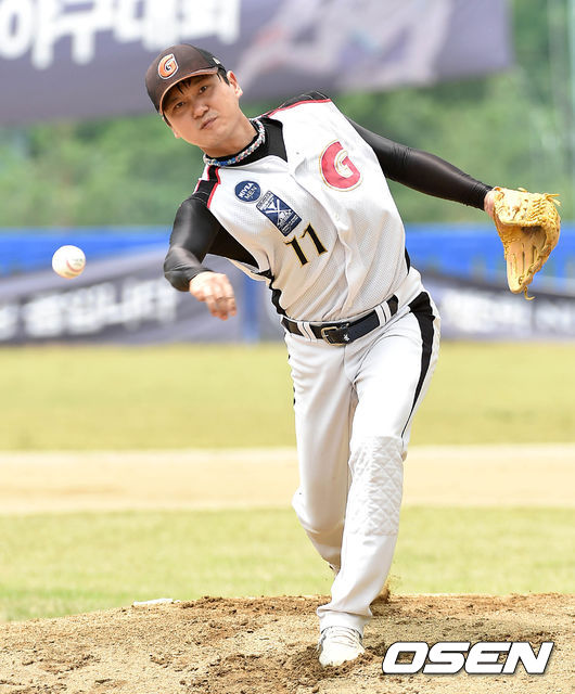 1회초 무사에서 안양GMB 선발투수 이은호가 힘차게 공을 던지고 있다.