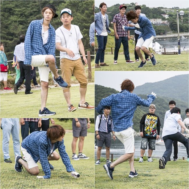 공개된 사진 속 정준영은 거제도의 유명 관광지인 '바람의 언덕'에서 덕을 겨루는 '코끼리 코 후 상대팀 얼굴에 도장찍기' 게임을 하고 있다. 정준영은 게임이 공개되기 전부터 자신만의 방법으로 몸을 풀더니, 김명호 국사 선생님과 게임에서 만나자 전의를 활활 불태워 웃음을 자아냈다.