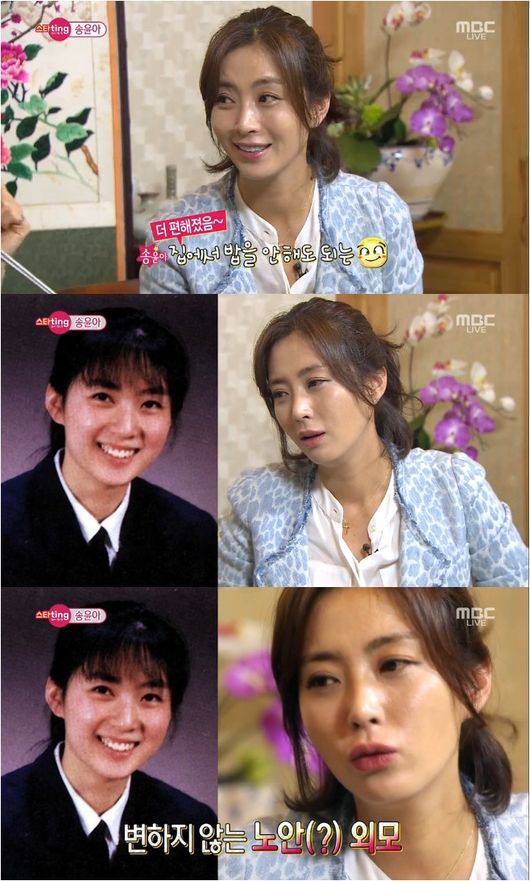 송윤아는 20일 방송된 MBC 연예정보프로그램 ‘섹션TV 연예통신’에서 고등학생 때 사진이 공개되자 “고등학생 때도 이 얼굴이었다”고 말했다.