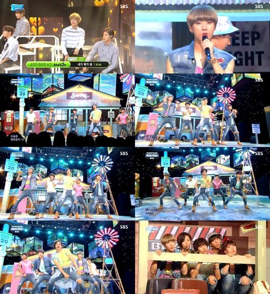 이날 B1A4는 어쿠스틱한 기타 선율이 두드러지는 ‘내가 뭐가 돼’ 무대를 시작으로 ‘솔로데이’에서는 서부를 배경으로 하여 시원해 보이는 ‘청청패션’을 입고 등장해 귀여운 안무로 시선을 사로잡았다. 또한 신나는 멜로디와 입에 착착 감기는 가사를 선보이며 무대를 마쳤다.