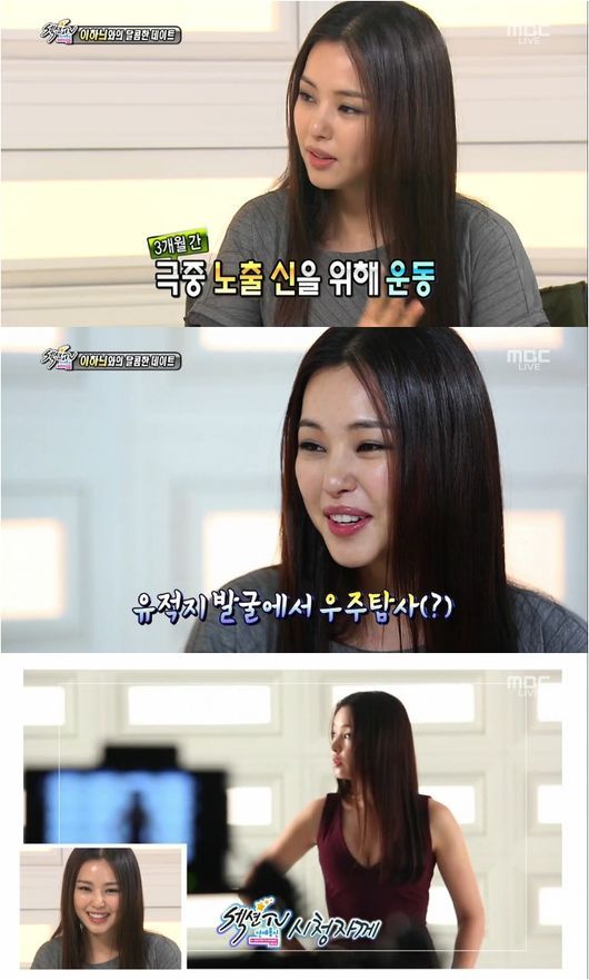 배우 이하늬가 영화 ‘타짜2’ 노출신을 위해 운동을 했다고 털어놓으며 우주 탐사 수준이었다고 고된 노력을 했다고 말했다.