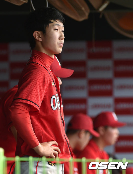 6회초 야탑고 박효준이 더그아웃에서 동료들을 응원하고 있다.