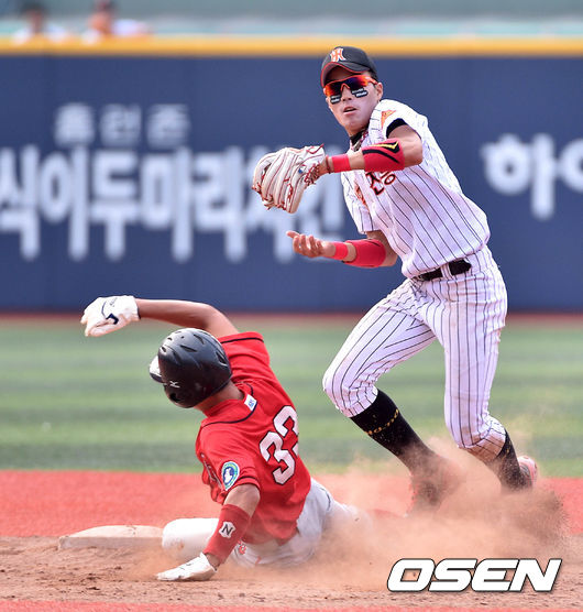 6회초 1사 1,2루에서 야탑고 나영재의 내야땅볼때 1루주자 정윤환이 포스아웃 되고 있다.