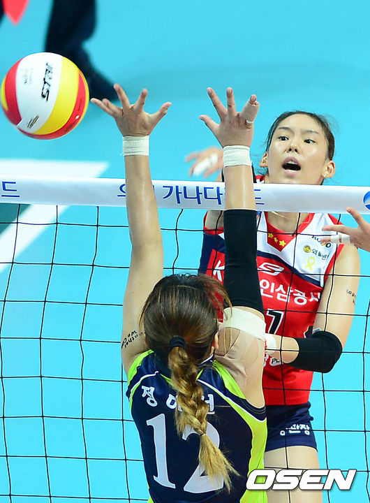 20일 오후 경기도 안산시 상록수체육관에서 진행된 '2014 우리카드컵 프로배구대회'(이하 코보컵) 여자부 B조 현대건설과 KGC인삼공사의 경기, 1세트 KGC인삼공사 이연주가 스파이크를 시도하고 있다.