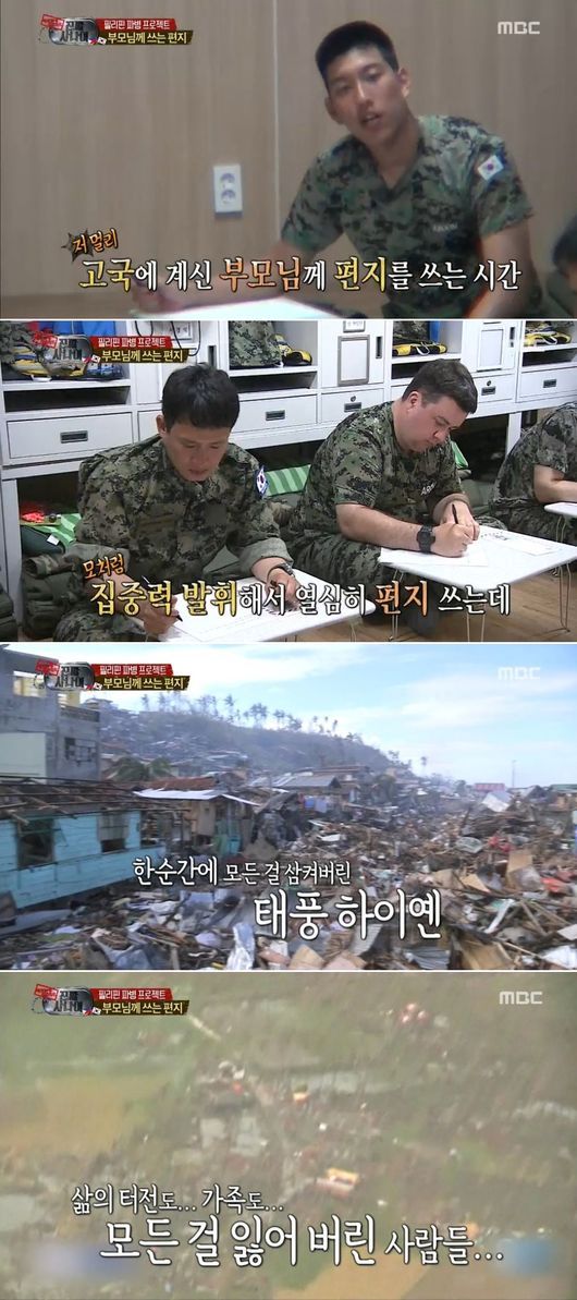 20일 오후 방송된 MBC 예능프로그램 ‘일밤-진짜사나이’(이하 ‘진짜사나이’) 에서는 필리핀으로 파병을 간 멤버들이 부모님께 편지를 쓰는 시간을 갖는 모습이 그려졌다.