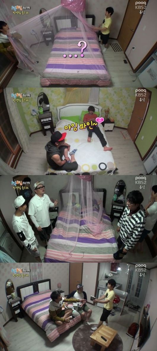 '1박 2일' 실내 취침 멤버들이 남자 둘이 한 침대에 자야하는 상황을 마주하고 당황스러움을 감추지 못했다.