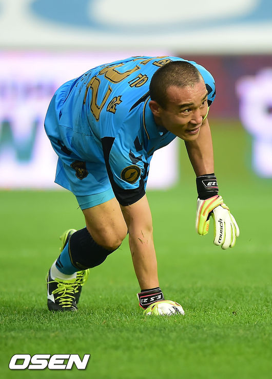 20일 오후 전주월드컵경기장에서 열린 전북 현대와 상주 상무의 '현대오일뱅크 K리그 클래식 2014' 16라운드 경기, 전반 전북 최은성이 슛을 막아낸 후 다시 슛을 막기 위해 달려나오고 있다.