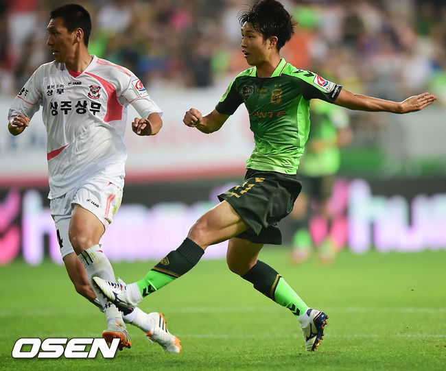 20일 오후 전주월드컵경기장에서 열린 전북 현대와 상주 상무의 '현대오일뱅크 K리그 클래식 2014' 16라운드 경기, 후반 전북 이승기가 팀 세번째골에 성공하고 있다.