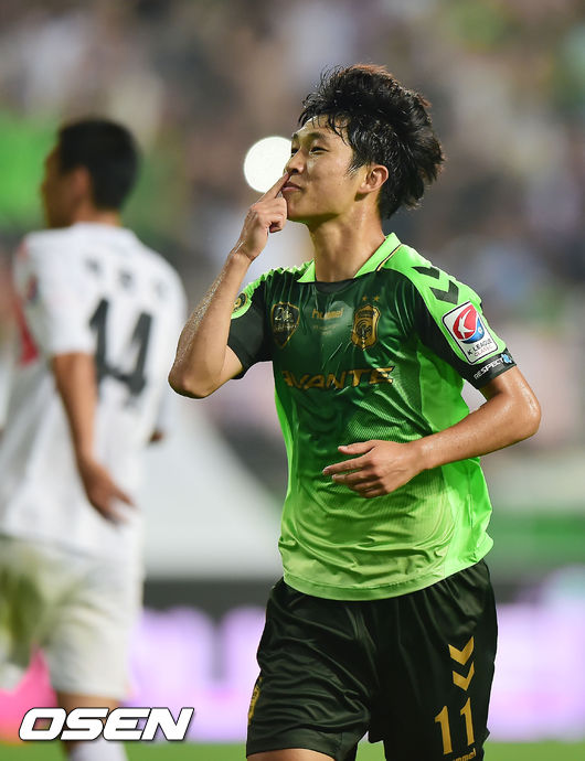 20일 오후 전주월드컵경기장에서 열린 전북 현대와 상주 상무의 '현대오일뱅크 K리그 클래식 2014' 16라운드 경기, 후반 전북 이승기가 팀 세번째골에 성공한 후 기뻐하고 있다.
