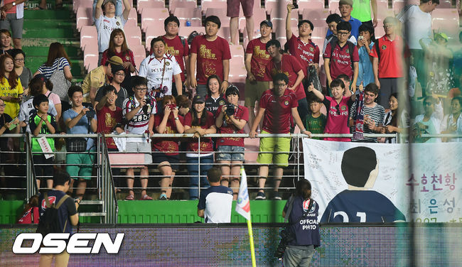 경기를 마치고 전북 최은성이 팬들에게 다가가 인사를 하고 있다./ rumi@osen.co.kr