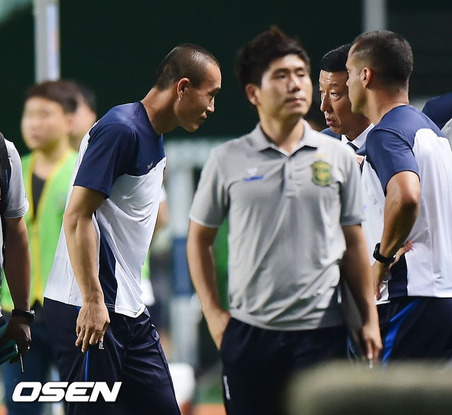 경기를 마치고 전북 최은성이 최강희 감독에게 인사를 하고 있다./ rumi@osen.co.kr