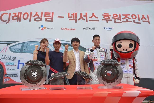 CJ레이싱팀 - 넥서스 브레이크 후원 조인식 (CJ레이싱팀 김의수 감독, 넥서스 브레이크 박경준 대표, GT 디펜딩 챔피언 최해민) / CJ 제공