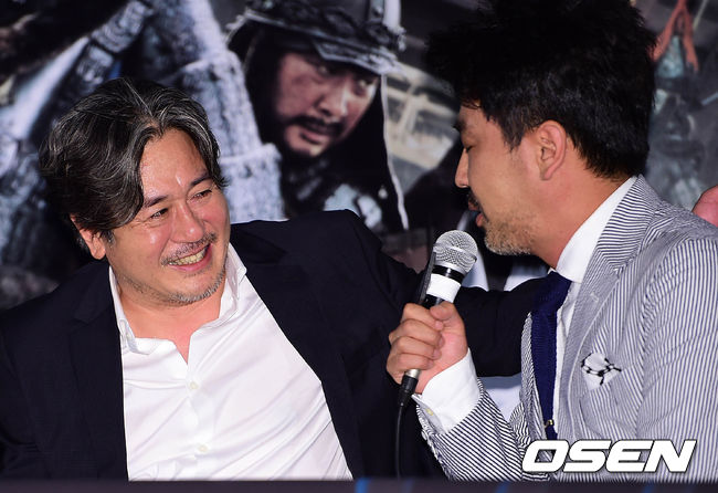배우 최민식과 류승룡이 21일 오후 서울 행당동 CGV왕십리에서 열린 영화 '명량'(감독 김한민) 언론시사회에 참석해 인사말을 하고 있다.