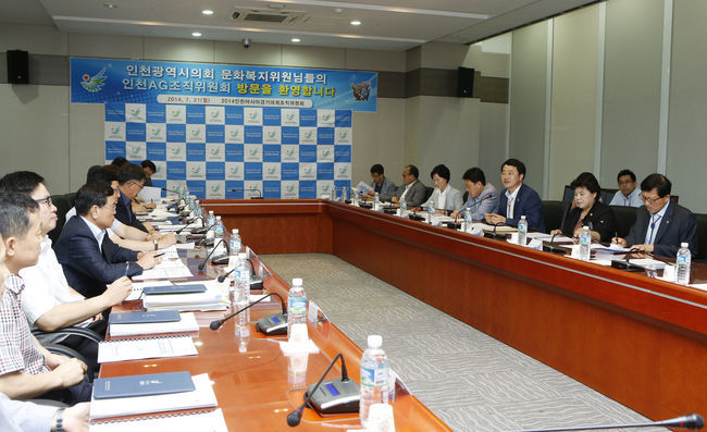 2014 인천아시아경기대회 조직위원회(위원장 김영수)는 21일 인천시의회 문화복지위원회 이한구 위원장을 비롯한 문화복지위원들을 초청해 간담회를 가졌다.