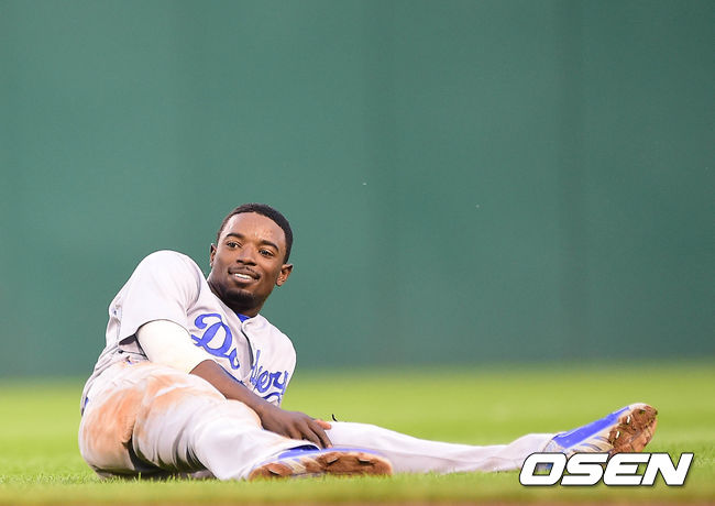 22일(이하 한국시간) 미국 펜실베니아주 피츠버그 PNC파크에서 열리는 피츠버그 파이어리츠와 LA 다저스의 경기, 4회말 1사 맥커친의 잘 맞은 타구가 고든의 글러브에 들어갔다 나오며 안타가 되자 고든이 아쉬워하고 있다.