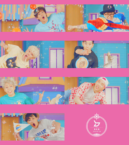 이번에도 역시 리더 지코의 손을 거쳐 준비된 블락비의 네 번째 미니앨범 'H.E.R(헐)'은 영어 'HER'의 '그녀'를 뜻함과 동시에 그녀를 보고 깜짝 놀라 내뱉는 감탄사 '헐'이라는 이중적인 의미를 지니고 있다.
