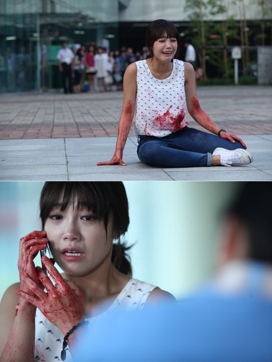 정은지는 22일 '트로트의 연인' 측이 공개한 사진에서 피를 온 몸에 묻힌 채 오열하는 모습이다. 전화기를 붙든 채 어찌할 바를 몰라하는 그의 모습에 궁금증을 자아내고 있다.