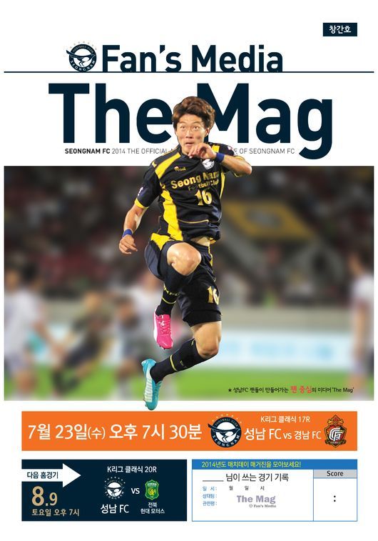 성남FC가 23일 오후 7시 30분 탄천종합운동장에서 열리는 경남FC와의 '현대오일뱅크 K리그 클래식 2014' 17라운드에서 팬들이 직접 만드는 매거진 'The Mag(더 맥)'을 선보인다.