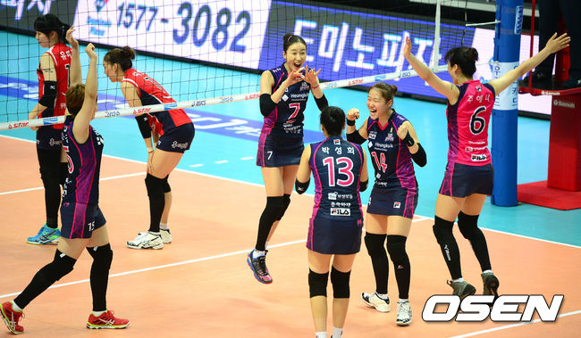 경기후 승리한 흥국생명 선수들이 기뻐하고 있다./ jpnews@osen.co.kr