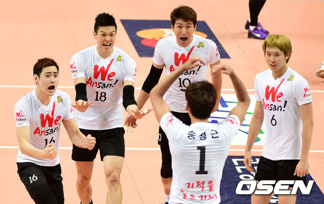 22일 오후 경기도 안산 상록수체육관에서 '2014 우리카드컵 프로배구대회'(이하 코보컵) 남자부 B조 OK저축은행과 대한항공의 경기가 열렸다.