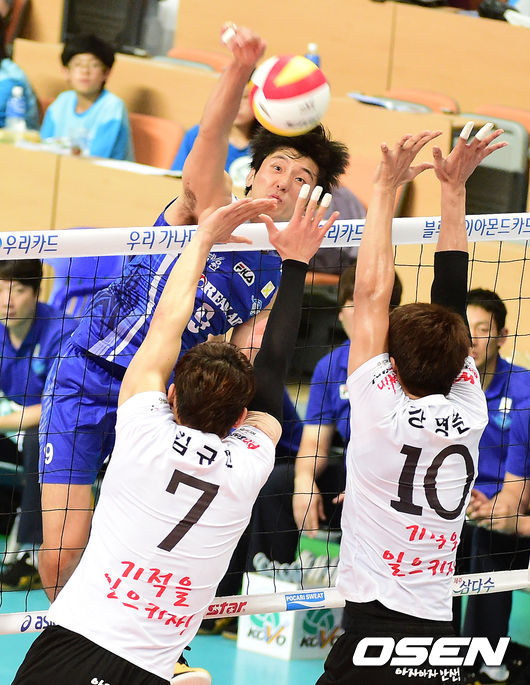 22일 오후 경기도 안산 상록수체육관에서 '2014 우리카드컵 프로배구대회'(이하 코보컵) 남자부 B조 OK저축은행과 대한항공의 경기가 열렸다.
