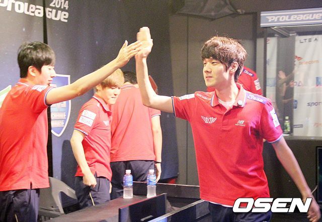 SK텔레콤 T1(이하 SKT)은 22일 서울 서초 강남 넥슨 아레나에서 열린 'SK텔레콤 스타크래프트2 프로리그 2014시즌' PO 4강 3차전서 4-3으로 CJ엔투스를 이기고 결승에 진출했다.