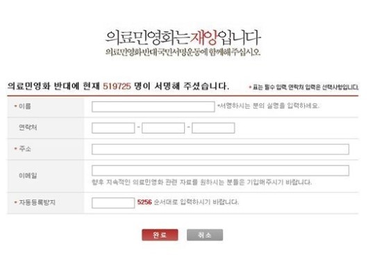의료민영화에 반대하는 100만인 서명운동이 확산되고 있다.