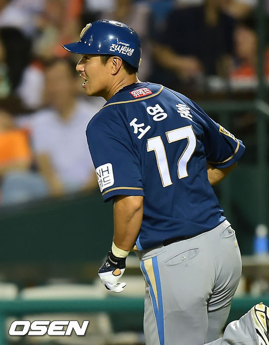 22일 오후 대전 한밭야구장에서 열린 '2014 한국야쿠르트 세븐 프로야구' 한화 이글스와 NC 다이노스의 경기, 8회말 2사 주자 만루 NC 조영훈이 우익수 오른쪽 2타점 적시타를 날리고 있다.