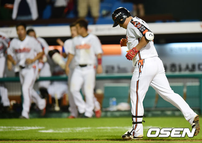 경기를 마치고 밀어내기 볼넷으로 정현석이 경기를 끝내고 있다. / rumi@osen.co.kr