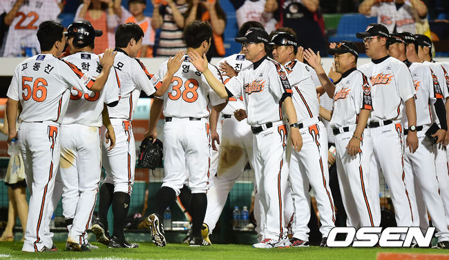 경기를 마치고 한화 선수들이 코치진들과 하이파이브를 하고 있다. / rumi@osen.co.kr