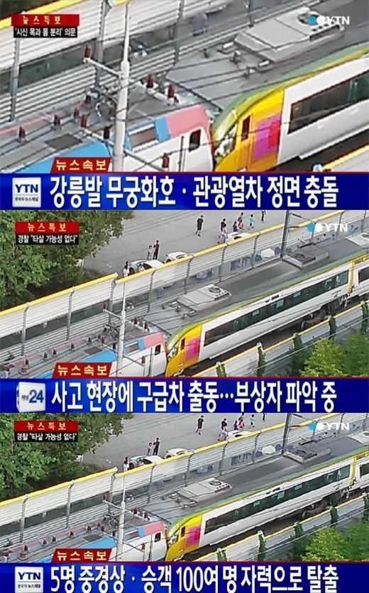 태백역과 문곡역 사이에서 열차가 정면 충돌하는 사고가 일어났다.