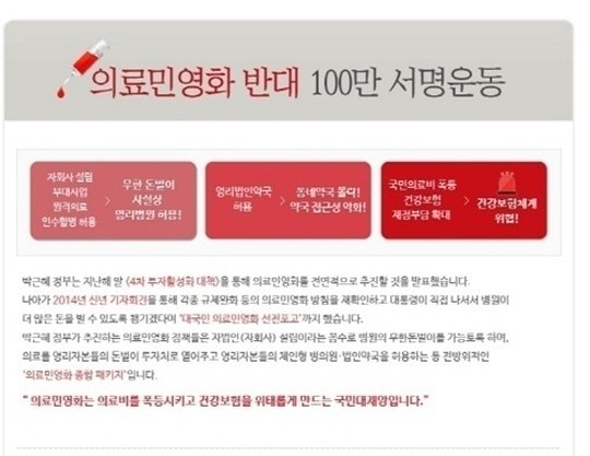 '의료민영화' 반대 서명 운동이 SNS를 통해 빠르게 확산되고 있다.