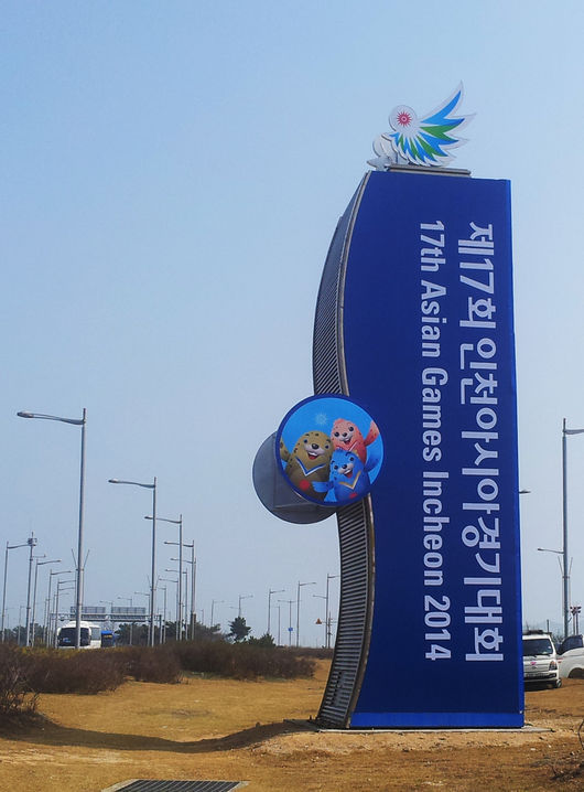 9년 연속 세계 1위 공항에 빛나는 인천국제공항공사는 현재 공항대로에 설치돼 있는 공항공사 홍보탑을 ‘2014인천아시아경기대회’ 홍보탑으로 교체 설치했다.