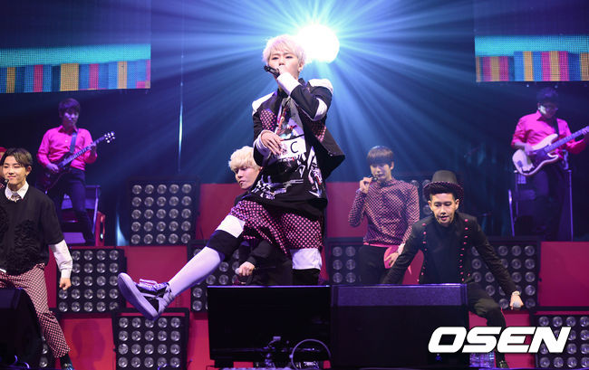 23일 오후 서울 광진구 악스코리아에서 열린 그룹 블락비의 쇼케이스에서 블락비가 멋진 무대를 선보이고 있다.