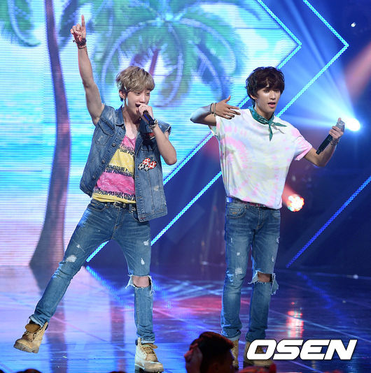 그룹 B1A4 진영과 공찬이 감미로운 무대를 펼치고 있다.