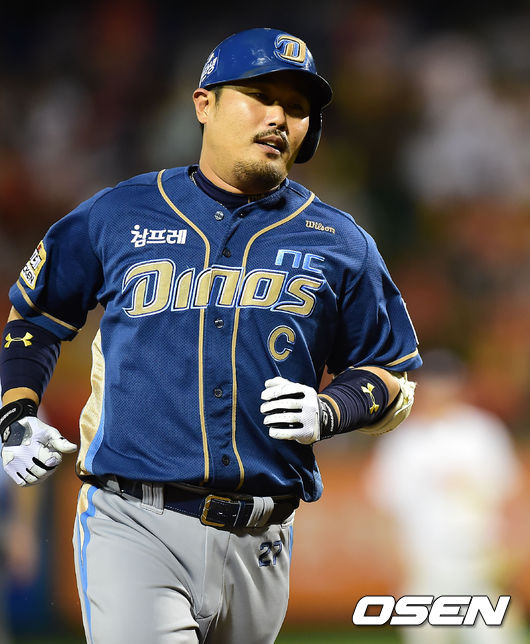 23일 오후 대전 한밭야구장에서 열린 '2014 한국야쿠르트 세븐 프로야구' 한화 이글스와 NC 다이노스의 경기, 7회초 1사 주자 2루 NC 테임즈가 우월 투런 홈런에 이어 이호준이 백투백 홈런을 날린 후 그라운드를 돌고 있다.