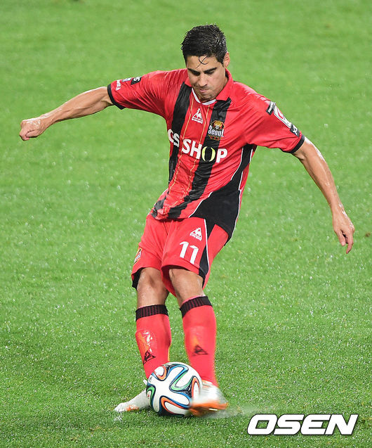 후반 FC서울 몰리나가 프리킥으로 동점골을 터트리고 있다.