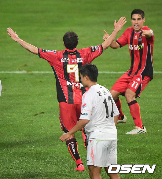후반 FC서울 에스쿠데로가 역전골을 작렬시킨 뒤 환호하고 있다.